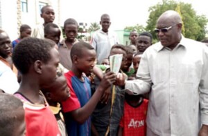 سلم الطفل محمد عبد الله ، من معسكر كلمة للنازحين بنيالا حاضرة ولاية جنوب دارفور ، والي الولاية آدم الفكي ، مبلغاً مالياً قدره (100) جنيه و(3) ملوه من القنقليز (تبلدي) والكركدي مساهمة منه للدورة المدرسية القومية (28) التي تستضيفها الولاية هذه الأيام .