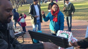 أثار فيديو إعجاب رواد مواقع التواصل الاجتماعي تظهر فيه ناشطة سودانية وهي توزع شطائر البيتزا للمحتجين السودانيين أثناء تنظيم وقفة احتجاجية أمام البيت الأبيض الأمريكي وقد عرفت الناشطة بأنها تنتمي للجنة المعلمين السودانيين بالولايات المتحدة الأميركية .