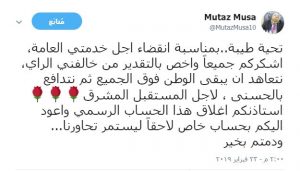 وأستأذن موسى متابعيه بإغلاق حسابه الرسمي، مع التحول إلى إدارة حواراته عبر حساب خاص.