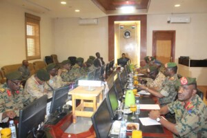 جاء ذلك لدى لقائه يوم الأحد بمكتبه بديوان الحكم الاتحادي بولاة الولايات العسكريين، حيث استعرض الاجتماع دور ديوان الحكم الاتحادي تجاه الولايات من حيث التنسيق والاتصال والربط بالمركز وتكاليفهم في المرحلة المقبلة. وقدم سيادته شرحاً مفصلاً لقانون الديوان والمهام المتعلقة به وربطه مع الولايات وقدم كذلك شرحاً تفصيلياً لهيكل الديوان المجاز وما يلي الولاة من مهام. وتلى الوزير قرار وزير الدفاع بأن يكون الزي الرسمي هو زي الوالي لأنها حكومة طوارئ.