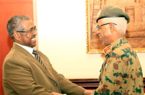 بحث النائب الأول لرئيس الجمهورية، الفريق أول ركن عوض بن عوف، مع رئيس مجلس الوزراء القومي، محمد طاهر ايلا، قضية معاش الناس والإجراءات التي تمت والتي سيتم اتخاذها للاطمئنان على توفير السلع الأساسية للمواطنين من الوقود والقمح والدواء.