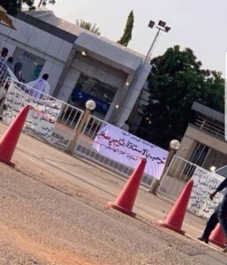 وعلقت الكثير من اليافطات الترحيبية بها في مدخل ومخرج مطار الخرطوم الدولي .