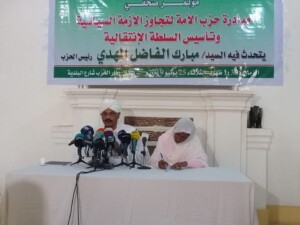 أعلن رئيس حزب الأمة مبارك الفاضل عن مبادرة لتجاوز الأزمة السياسية الراهنة وتأسيس السلطة الإنتقالية، وقال الفاضل في مؤتمر صحفي عقده اليوم الثلاثاء بدار الحزب إن المبادرة تؤسس لقيام سلطة انتقالية متوافق عليها.