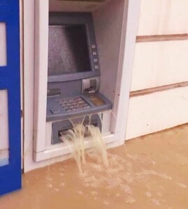 تداول رواد مواقع التواصل الإجتماعي صورة لصراف آلي قيل انها بالعاصمة السودانية الخرطوم، وقد تأثر بالأمطار التي هطلت بغزارة على العاصمة خلال الايام الماضية، مما أدت إلى غمر غرفة الصراف وإخراج المياه من منفذ استلام النقود، بحسب ما نقلت “كوش نيوز”.