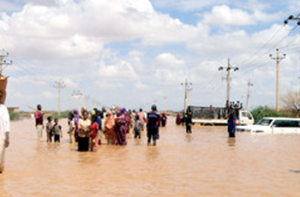وضربت سيول شديدة مدينة الجيلي (شمال الخرطوم) صباح اليوم (الإثنين) بعد تهدم جزء من الحاجز الترابي حول المدينة والذي أدى إلى إغراق العديد من المنازل والممتلكات.