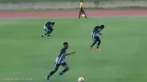 وبحسب سكاي نيوز عربية يظهر الفيديو ضوءا خاطفا سببه البرق في الدقيقة 82 من المباراة، وسقوط لاعبين على الأرض فورا.