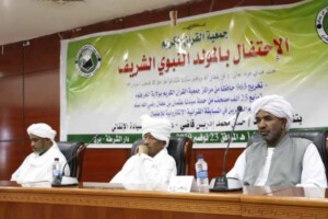 وحث لدي مخاطبته اليوم بنادي الشرطة ببري إحتفال جمعية القرآن الكريم بالمولد النبوي الشريف بحضور قنصل دولة مالي حث على تعزيز قيم الدين المتمثلة في العدالة والسلام وحذر من استغلاله في الفساد والتآمر علي الوطن وحق الشعوب.