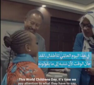وعلق رئيس الوزراء السوداني على حديثها معربا عن سعادته بأن الطفلة تتفهم جيدا ضرورة عدم الاستعانة بالعنف الجسدي حتى لفرض الانضباط.