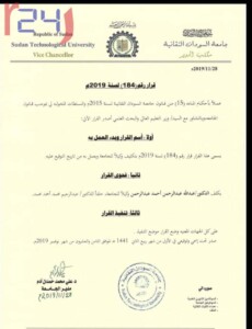 اثار القرار الذي أصدره مدير جامعة السودان التقانية دكتور علي محمد حمدان بالرقم “184” لسنة 2019، وفقا للمادة “15” من قانون جامعة السودان التقانية للعاك 2015 والقاضي بتكليف د. عبد الله عبد الرحمن وكيلاً للجامعة خلفاً للدكتور عبدالرحيم محمد احمد دهشة واستغراب الجميع.
