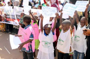 نظمت الجمعية الأفريقية الخيرية لرعاية الأمومة والطفولة،وقفة احتجاجبة مطلبية بمشاركة الامهات والارامل والنساء معيلات الاسر البالغ عددهن “13” الفاً رفضاً للقرار الذي وصفته بغير الموافق والجائر والذي أصدرته مفوضية العون الانساني.