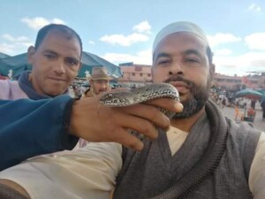 وقال الحكيم بحسب مانقل محرر “كوش نيوز”: في ساحة السَحرة ” الفناء” بمراكش ولقاء مع ثعبان، الموضوع ليس سحراً بل يخدعونك، انها مهارة ترويض، حيث يقتلعون أسنانه المرتبطة بالسم ثم يحبسوه في ماء لمدة أسبوع بعدها يفقد قدرته على إيذاء البشر.