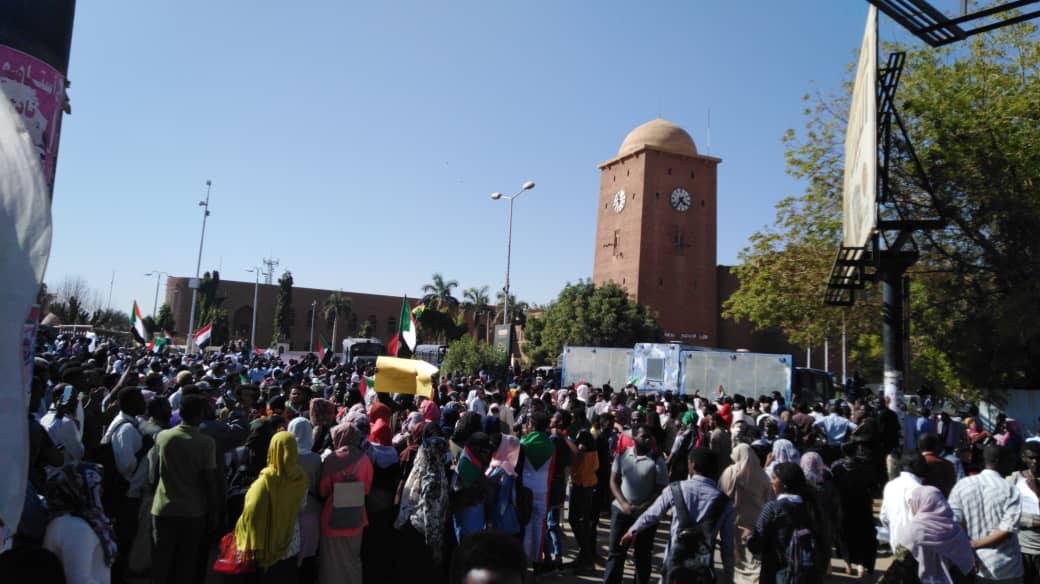 الحشود التي رابطت قرب مجمع محاكم الأوسط أم درمان “ميدان الخليفة” منذ الصباح الباكر أمس لم تتوقف عن الهتاف “الشعب يريد قصاص الشهيد”، “يا عسكر مافي حصانة، يا المشنقة يا الزنزانة”،  “الدم قصاد الدم ما بنقبل الدية”.
