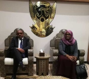 و كانت وزيرة العمل والشؤون الاجتماعية لينا الشيخ بحسب موقع صحيفة السوداني، في استقباله بمطار الخرطوم.