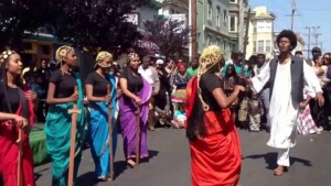 احتشد عشرات الخواجات من الامريكان بولاية سان فرانسسكو الامريكية وهم يتابعون في دهشة واعجاب عرضا للفنون الشعبية السودانية في احدى ساحات المدينة.