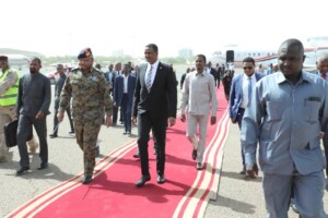 وكان في استقباله بمطار الخرطوم عضو مجلس السيادة الفريق ركن إبراهيم جابر والسفير صديق عبدالعزيز وكيل وزارة الخارجية .